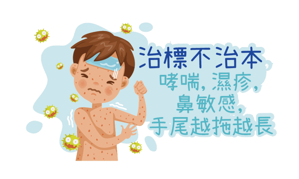 通常遇到過敏症狀.醫生都會處方外用類固醇, 抗組織胺,抗生素或外用免疫系統抑制藥物,但很多時候只發揮出即時舒緩及抑制之效果,並不能斷尾