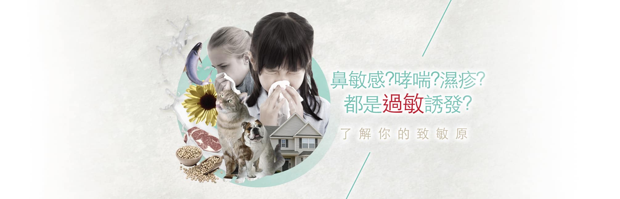 食物敏感、濕疹、鼻敏感、哮喘、蕁麻疹、皮膚敏感、風癩及接觸性皮膚炎均是由致敏原引起的病徵,可以透過ige測試及igg測試找出致敏原。